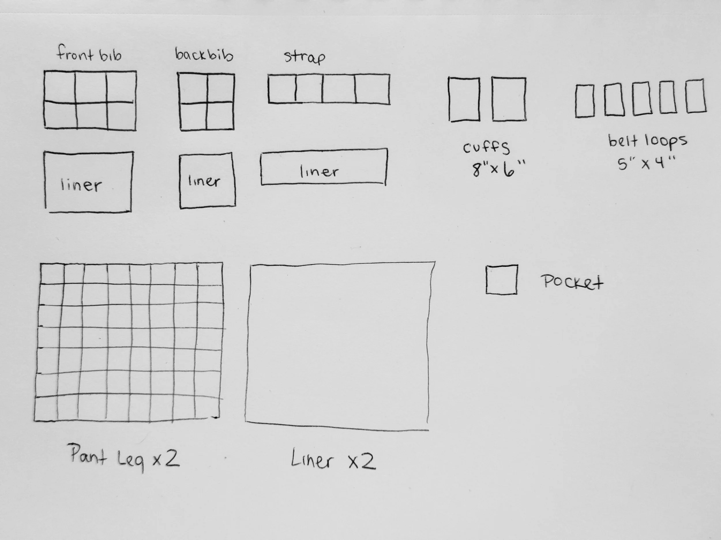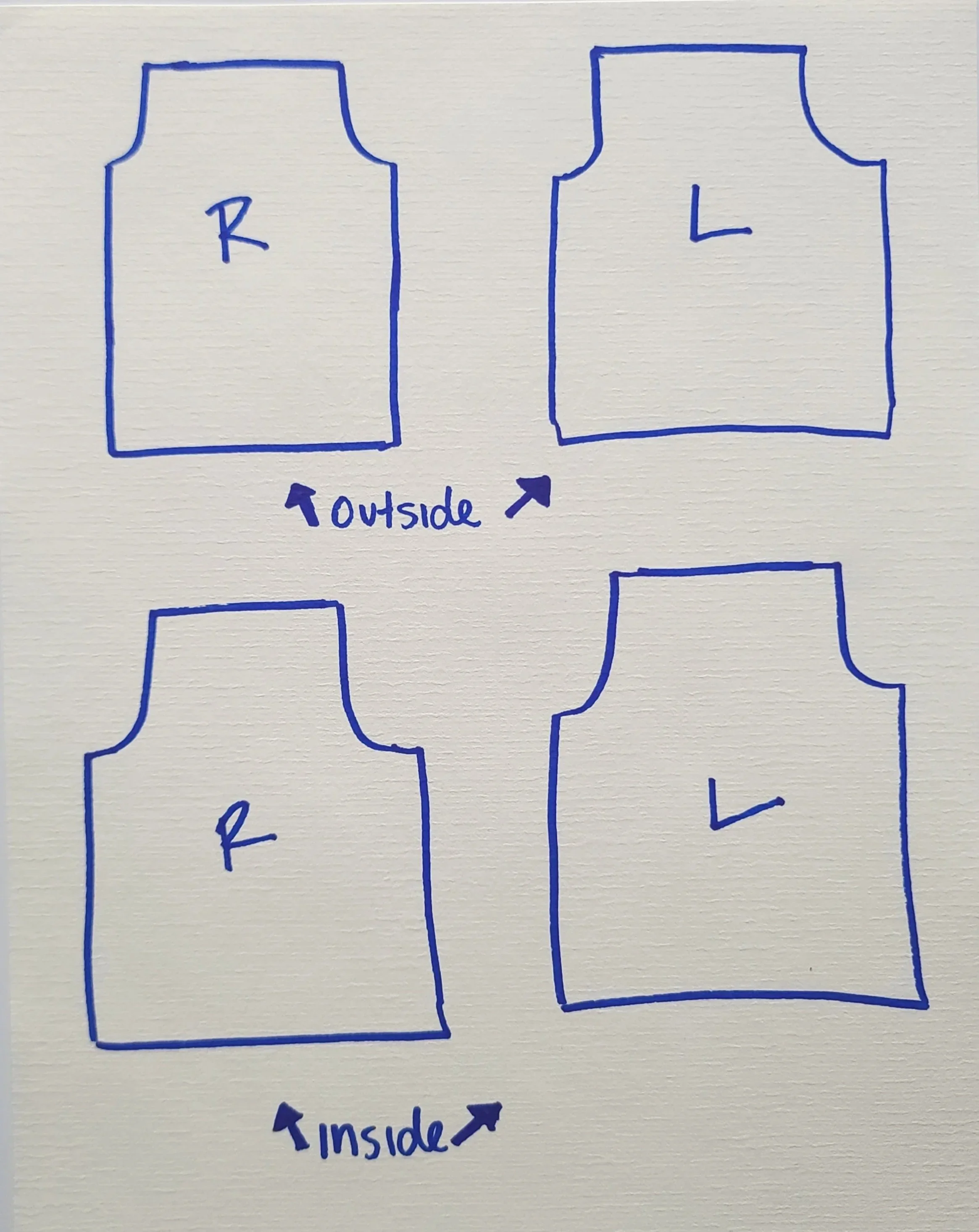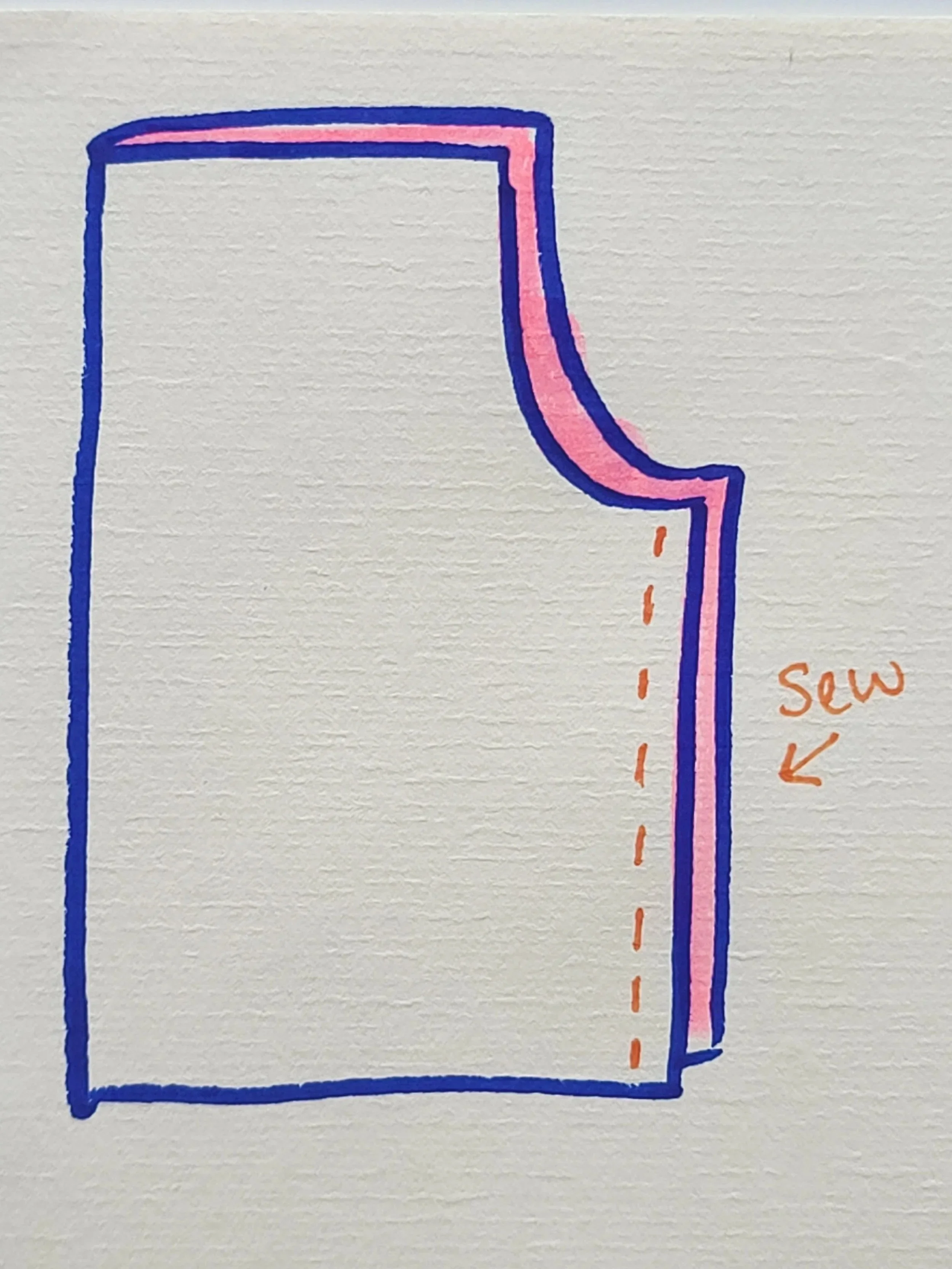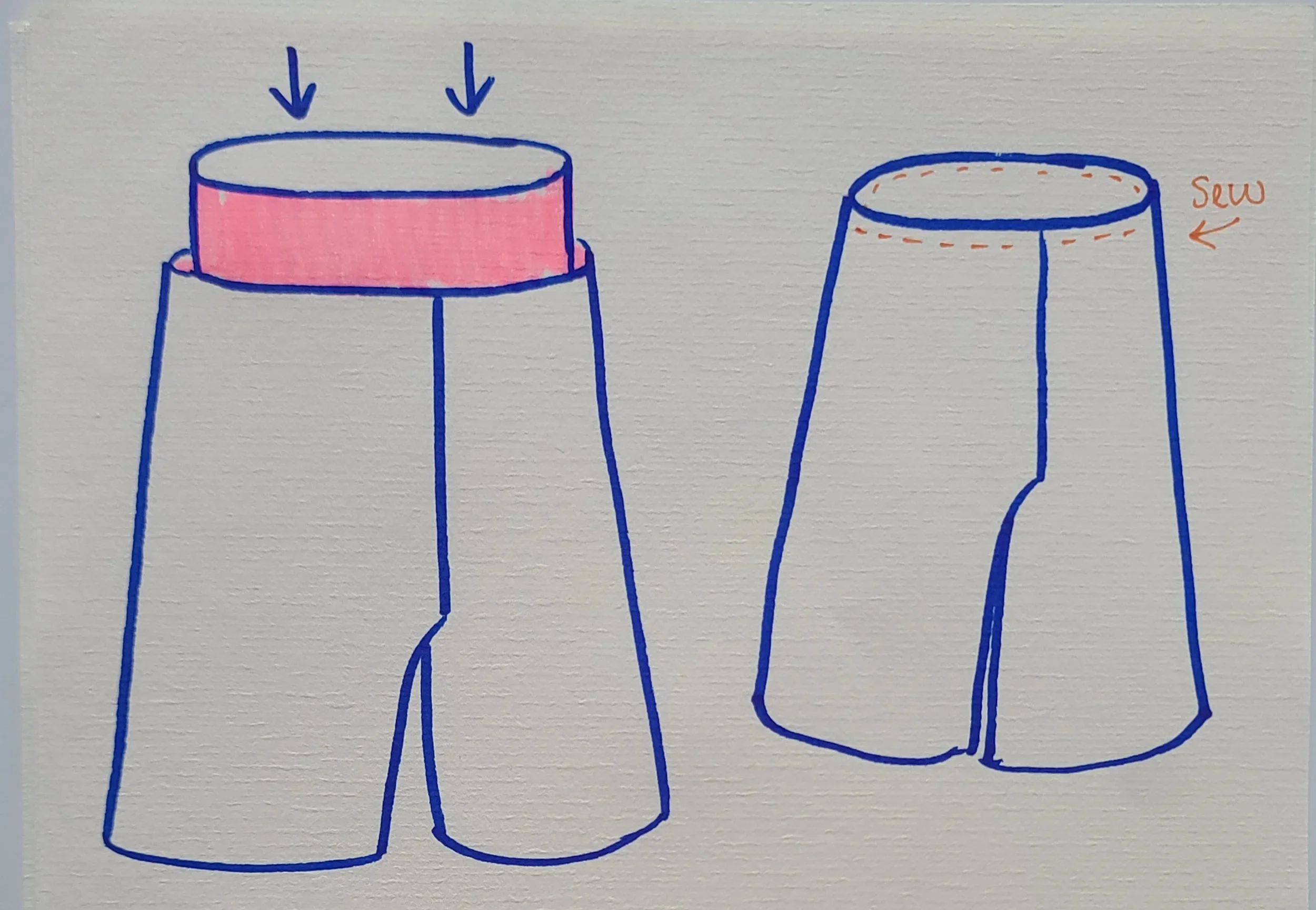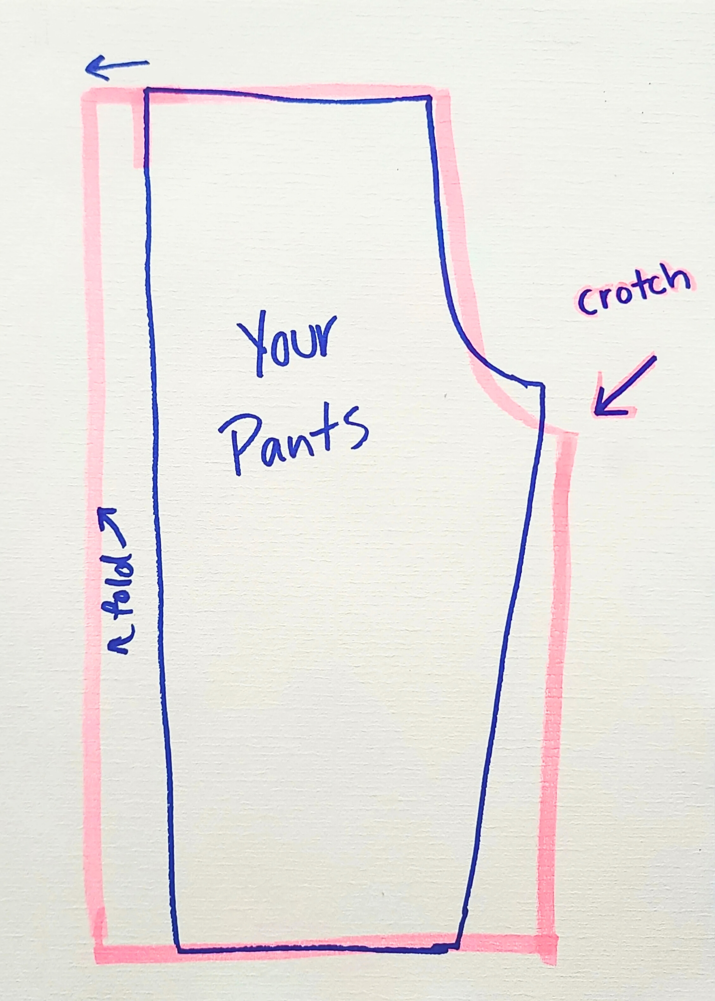(Your pants are shown in blue marker, the pattern is shown in pink)