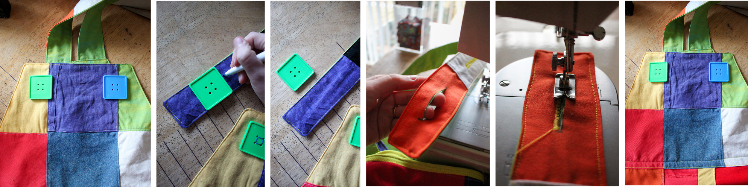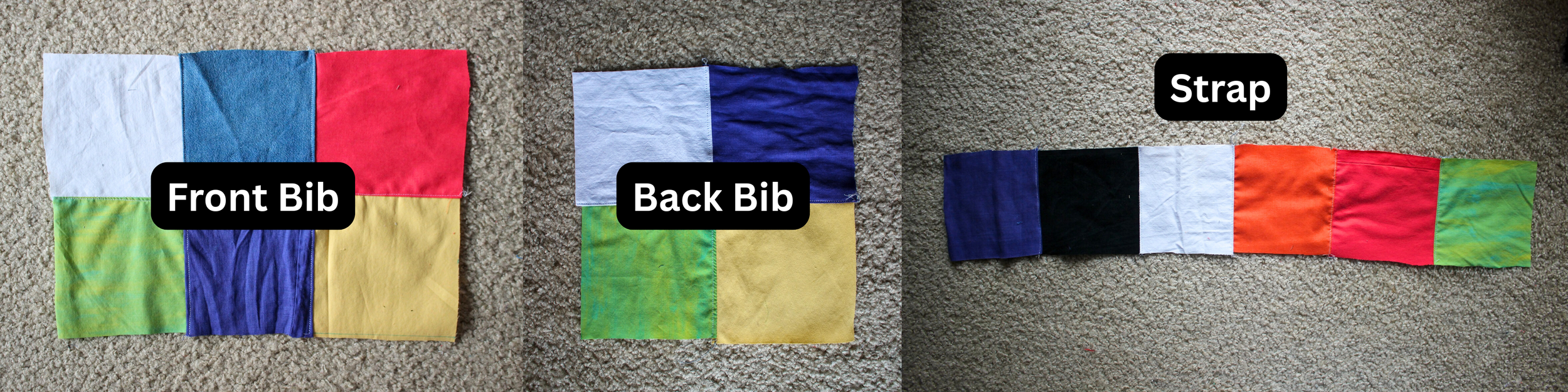 Also make sure the patchwork side of the strap is facing the patchwork side of the bib.
