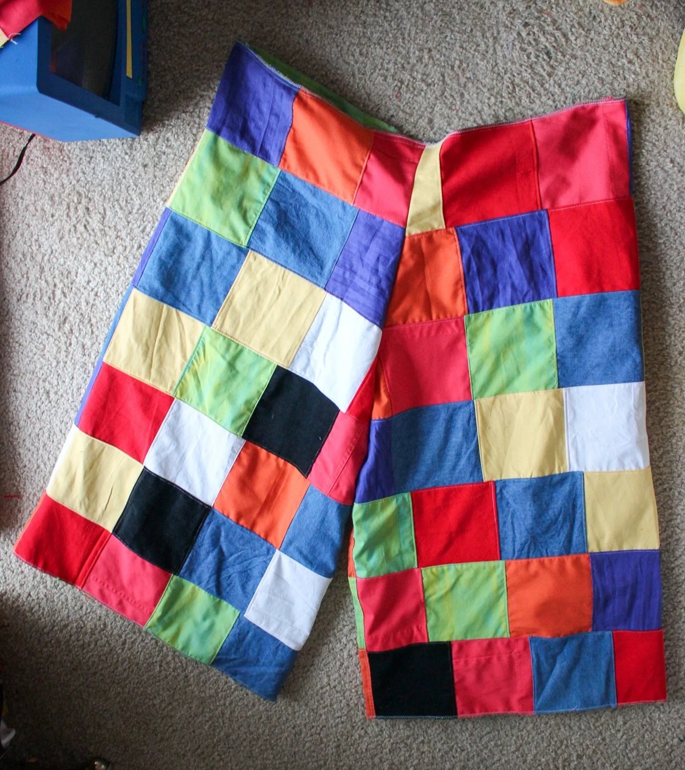 I cut ~ 127 squares for the patchwork. (Not including fabric for belt loops and cuffs)