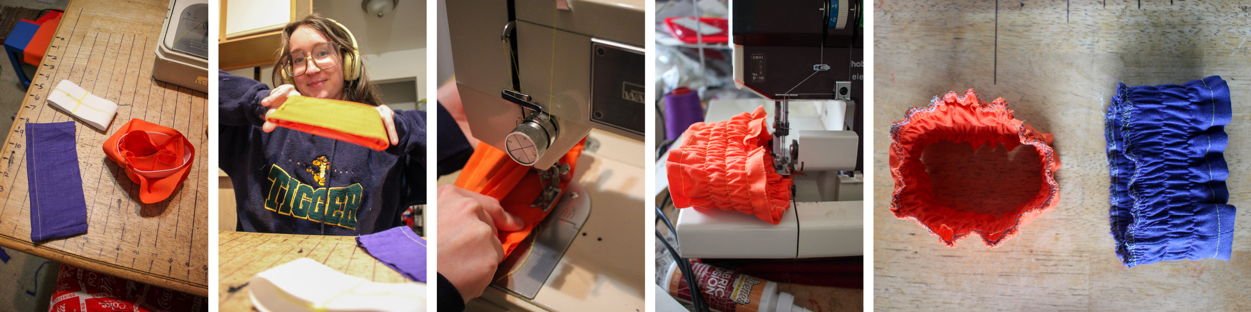 Cut 2 strips of elastic 21” long. (if you dont want the elastic as wide, you can just do 2 strips at 10.5” long and skip the next step.)