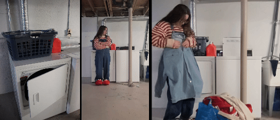 Image: Machine washing, air drying garments.