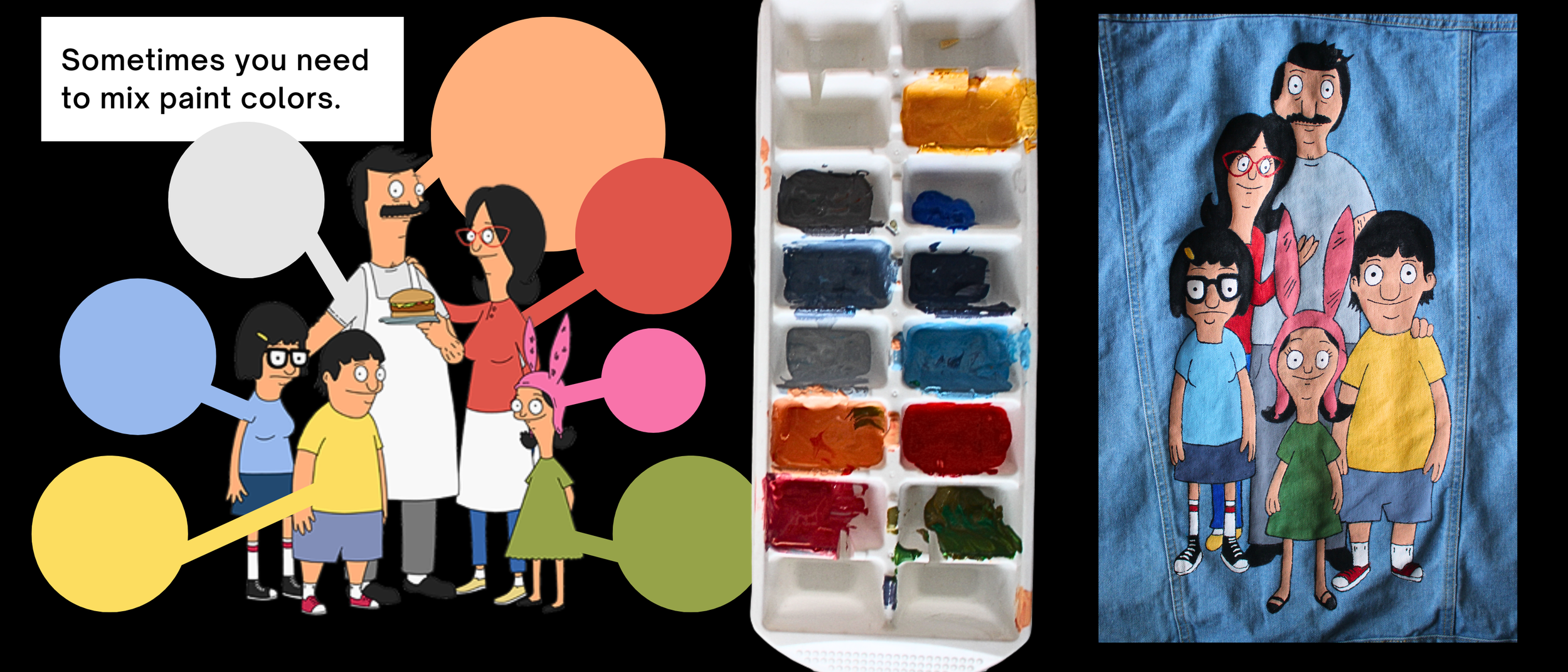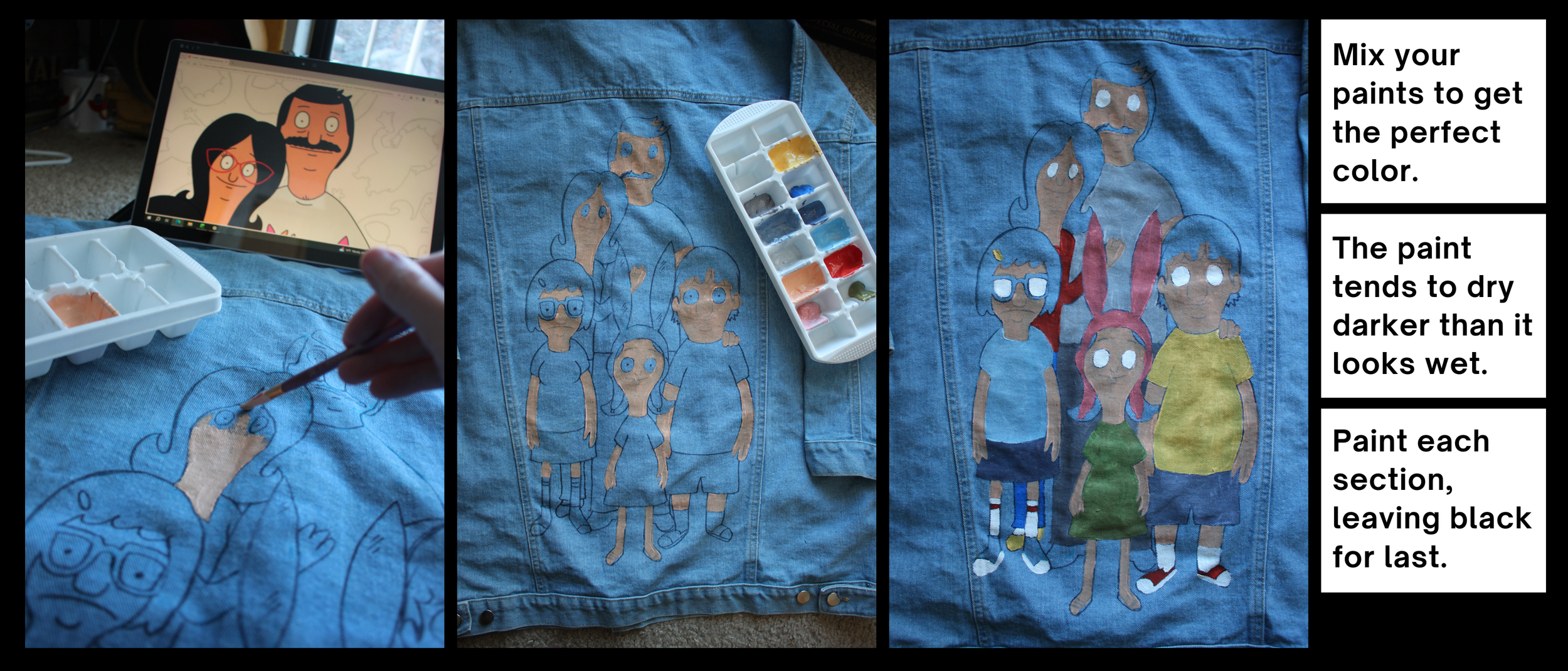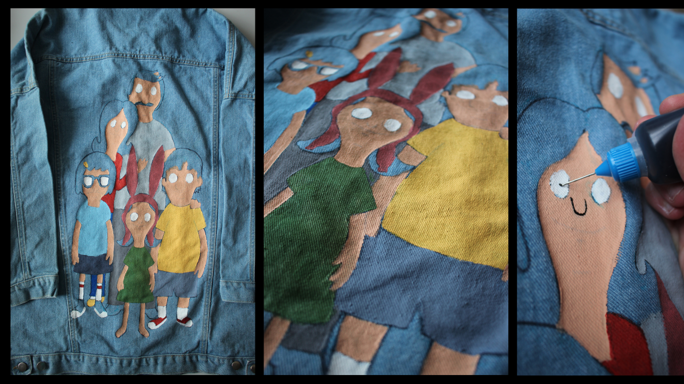 My Bob’s Burgers jacket rubbed off a little, I am going to use embroidery to fix the black parts, because you can’t apply new paint over cured paint.