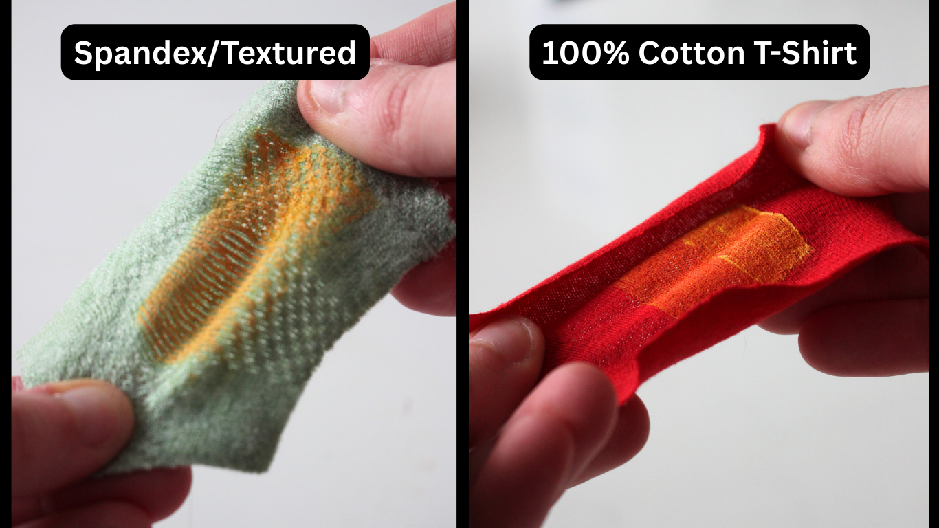 Image: Stretching the paint on spandex versus t-shirt fabric.