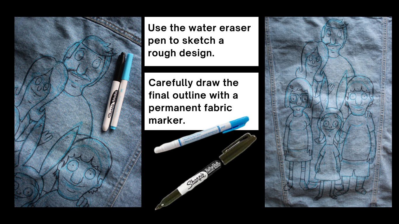 To sketch a character or design, use a water soluble pen first!